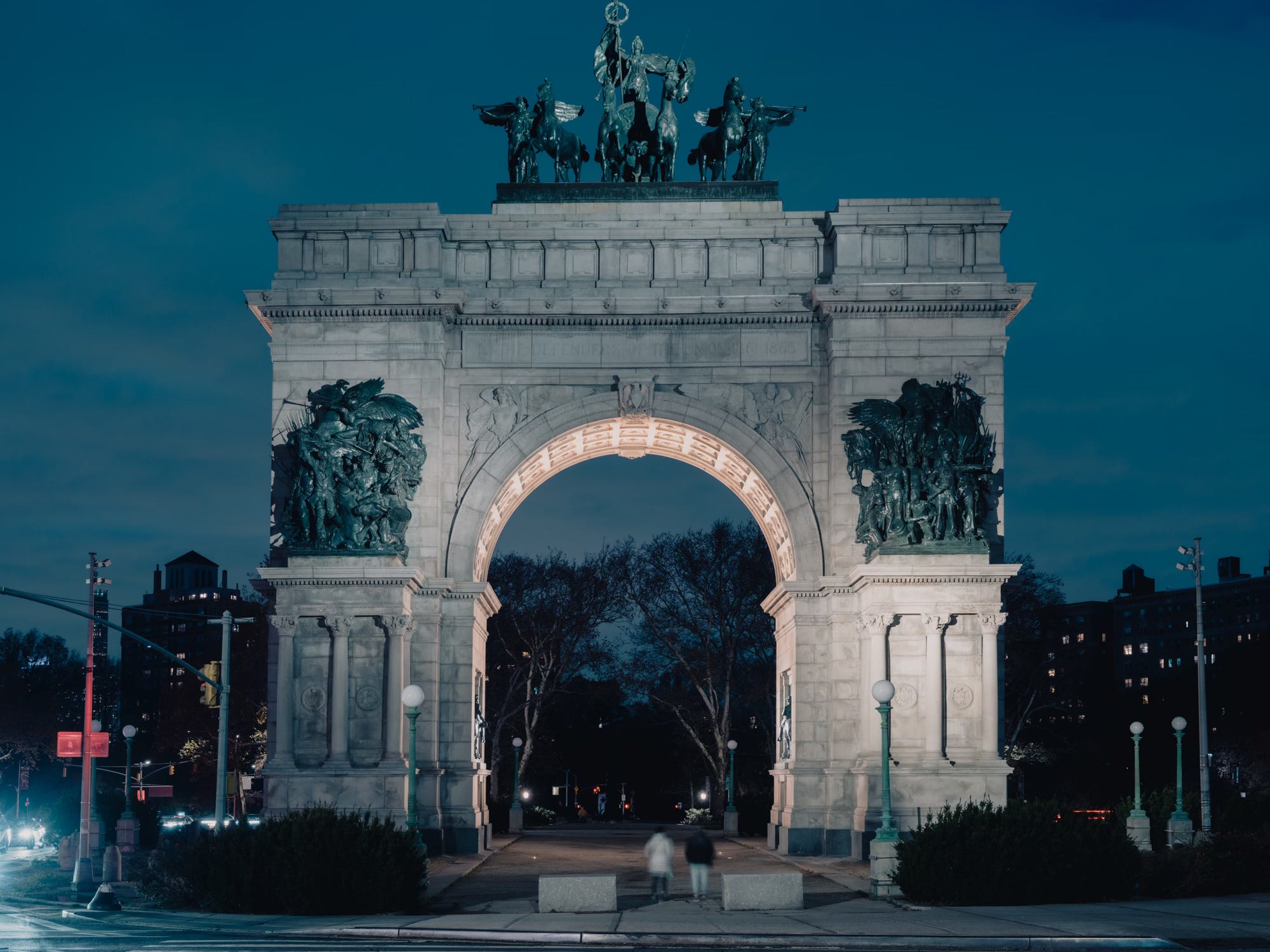 While the massive quadriga sculpture atop the arch and the two bronze groupings representing the Army and Navy—all by renowned Beaux-Arts sculptor Frederick MacMonnies—were well received, the two bas-reliefs on the arch’s interior were not. The reliefs, which were not sculpted by MacMonnies, depicted Abraham Lincoln and Ulysses S. Grant on horseback and were met with harsh criticism. Grant’s horse was described as a “miserable creature,” and critics suggested it would be better to remove the “costly bits of bric-a-brac” entirely than to display them “where their manifest inferiority hurts the finer sensibilities of every lover of art.”